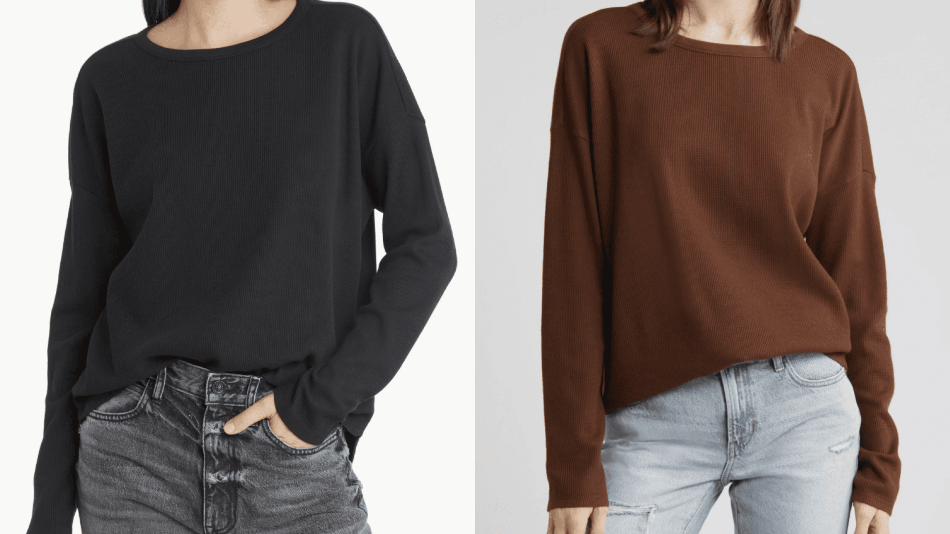 Because it’s a waffle knit, it’ll add some extra warmth in the mornings but won’t leave you feeling overheated by the end of the day. It comes in four colors (many of which are on sale). Make sure to size down as the fit is slightly oversized. ($24.75, Nordstrom)