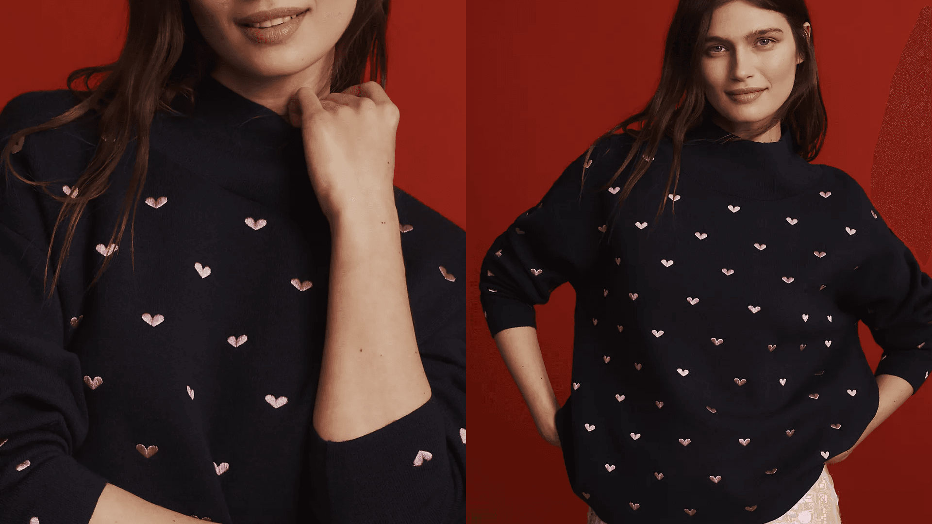 We all have that one person in our life who loves anything covered in hearts. This mock-neck sweater from Anthropologie has a relaxed fit and features light pink embroidered hearts. They can pair it with jeans for a simple date-night outfit. ($98, Anthropologie)